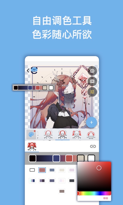 在这里,你可以使用画手们提供的模组,自由组装配件,“捏”出各式各样的新角色。