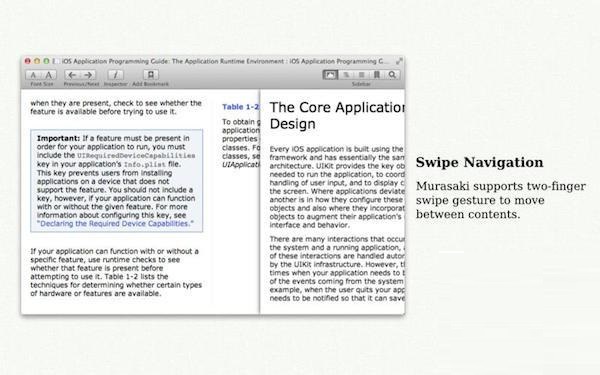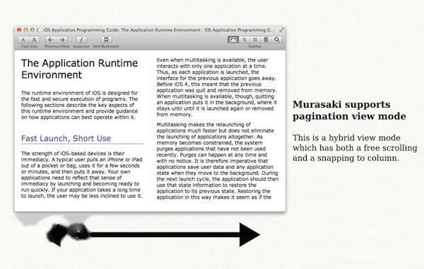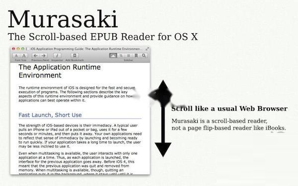 Murasaki 是像通常的网络浏览器一样的基于滚动的阅读器,而不是像 iBooks 那样的基于翻页的阅读器。