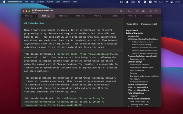 One Markdown MAC版是一款相当不错的文本编辑软件,One Markdown MAC官方版支持纯文本、Markdown 和