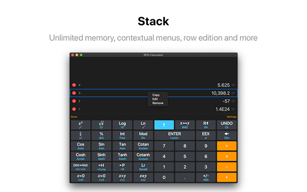 Mac版使用了工程师和科学家使用的非常高效的RPN系统,现在在Mac上你也可以体验到。