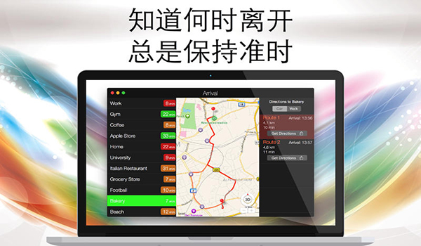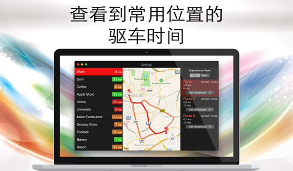 Arrival Mac版是个人驾车(步行)的好帮手,可显示当前交通状况、预计到达时间及所需旅程。Arrival还可提供不同的路线并为您推荐最佳路线。