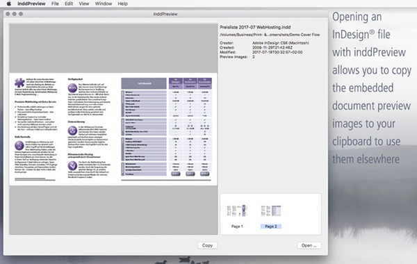 inddPreview Mac版主要是提供快速外观插件的媒介。此外,你还可以使用该应用程序将这些预览图像复制到剪贴板,以便在其他地方使用。适用InDesign文档(.indd)和InDesign模板文件(.indt)CS2 CC2018。