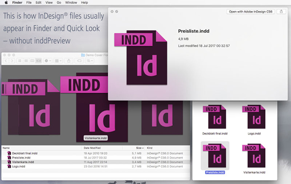 下载之家提供inddPreview Mac版的急速下载服务。inddPreview Mac版是Mac平台上的一款快速浏览插件,inddPreview Mac版可以显示预览的图片InDesign文档而不需要打开用InDesign。您也可以通过访问移动M站m.downza.cn来下载inddPreview Mac版。