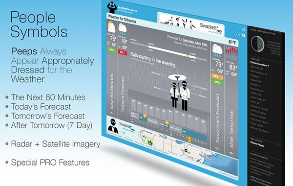 Swackett Mac版用一种全新的方式来看待天气,将复杂的天气数据简单的呈现给人们,便于理解。Swackett Mac版会根据今天的天气情况,寒冷,炎热,下雨,阴天,用不同的卡通形式人物的装扮来提醒人们增添衣物。