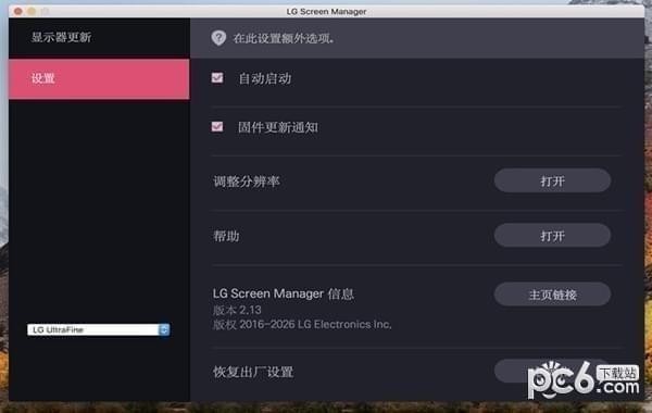 LG Screen Manager Mac版支持的显示器类别为22MD4KA,27MD5KA,用户在使用应用之前需要对照自己的显示器型号类型来进行管理和升级。
