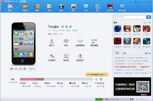 同步助手电脑版一款免费的iPhone、iPad、安卓手机管理工具。不用安装守护,不会修改手机权限及任何文件,远离白苹果的困扰。同步助手电脑版轻松管理苹果、安卓设备,可代替iTunes。聊天记录备份还原,垃圾清理,刷机越狱等功能应有尽有,还能免越狱安装海量苹果App、音乐、软件、壁纸、铃声等资源。