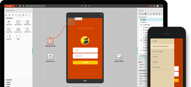 Mockplus中的原型交互设计完全可视化,所见即所得。拖拽鼠标做个链接,即可实现交互。同时,Mockplus封装了弹出面板、内容面板、滚动区、抽屉、轮播等系列组件,对于常用交互,使用这些组件就可快速实现。