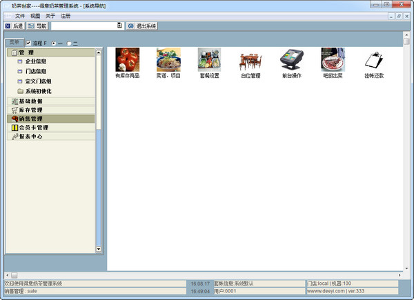 “得意系列餐饮管理系统”能为餐饮娱乐业主提供信息处理和业务管理的一整套解决方案。本系统能够为餐饮娱乐业运作提供全面的支持,是现代餐饮娱乐业管理模式与电脑信息技术的完美结合。运用本系统,能够帮助餐饮娱乐业主完善物流、信息流及资金流的管理、全面降低经营成本;实行科学合理进入库存、快捷配送、提高商品的周转率、降低库存;提高资金利用率及工作效率。得意奶茶管理系统是餐饮娱乐业主管理运作及经营决策的好帮手。
