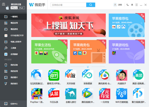 微助手是一款苹果和安卓设备能同时服务的手机管理软件。微助手功能非常强大,支持一键装机,能为用户提供官方正版资源下载和安装,还能进行手机数据备份,如果不知道怎样去解决手机软件的下载等问题就可以使用这款软件,有需要的朋友赶紧下载吧!