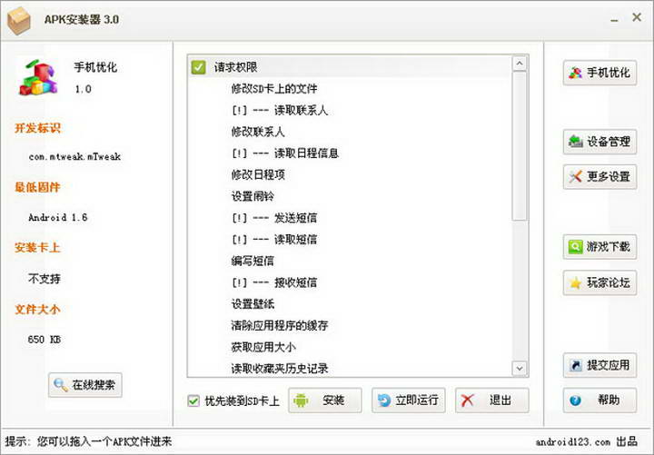 APK安装器官方版内置了APK文件权限
