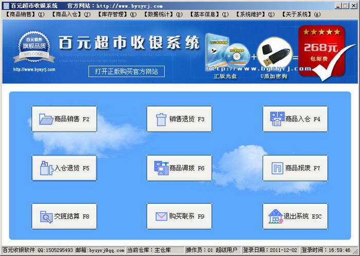 百元超市收银系统 软件大小:8.60MB 软件类型:国产软件 软件分类:商业贸易 软件语言:简体中文 软件授权:免费软件 支持系统:|WinAll| 普通下载 安全下载 需360手机助手 超市收银系统 详情 相关 百元超市收银系统官方版是一款非常受欢迎的软件,百元超市收银系统官方版界面友好,功能强大,拥有商品销售,商品入库,库存管理,数据统计,基本信息,系统维护等功能模块,操作起来简单便捷。 软件介绍 百元超市收银系统是一款专门为超市提供收银管理的软件,适用于中小超市、服装店、婴幼儿用品等店铺使用,该软件不需要专业培训就可以轻松上手,支持多种功能,帮助你轻松管理店铺。 软件功能 1、增加了商品入仓,库存管理等功能; 2、具有完整的进销存功能; 3、百元超市收银系统官方版采用了硬件U盾加密狗授权; 4、适合需要管理销售收银、进货和库存的中小店铺使用; 5、支持条码扫描枪、POS小票打印机、钱箱、顾客显示屏。 版本:官方版 v13.8 | 更新时间:2018-11-07 相关文章 商业贸易大全-商业贸易哪个好 超市收银系统大全-超市收银系统哪个好 百事佳收银软件正式版 v2.95 下载 龙欣超市收银系统最新版 v1.6 下载 金易超市收银系统免费版v2.0 下载 美萍超市管理系统官方版v2017.6.2 下载 立风超市收银系统官方版 v2.0 下载 百威超市收银系统官方版 v9.9 下载 百元超市收银系统官方版 v13.8 下载 百事佳超市收银软件官方最新版 v2.96 下载 最简单好用超市收银系统官方版 v6.5 下载 星宇超市收银系统官方版 v2.51 下载 猜你喜欢 超市收银系统 超市收银系统更多>> 本站超市收银系统软件合集为您提供超市收银系统软件相关最新资源下载安装。本合集有中信超市收银系统、大管家超市收银、店铺电脑收银系统等软件。关注本站超市收银系统软件合集帮您掌握超市收银系统软件最新版本动态,并提供同类型相关软件的下载,望能助您提升效率,快速解决遇到的难题! 百威超市收银系统详情 龙欣超市收银系统详情 零售超市收银软件详情 霖峰超市收银管理系统详情 同类推荐 新商盟 4.10MB / 2025-11-28 查看 阿里助手 110.16MB / 2025-09-01 查看 淘客助手 1.69MB / 2025-03-04 查看 淘宝助理 72.87MB / 2025-03-03 查看 癞蛤蟆工具箱 144.00MB / 2024-07-01 查看