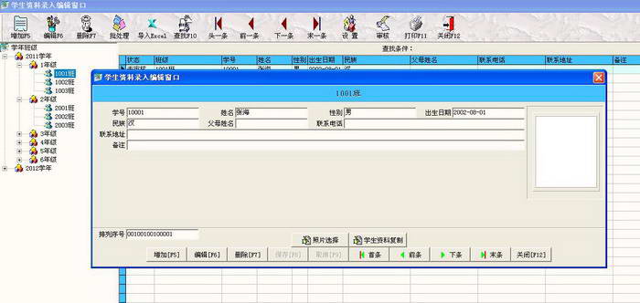 1、学生资料录入编辑将学生的信息利用表格的方式录入