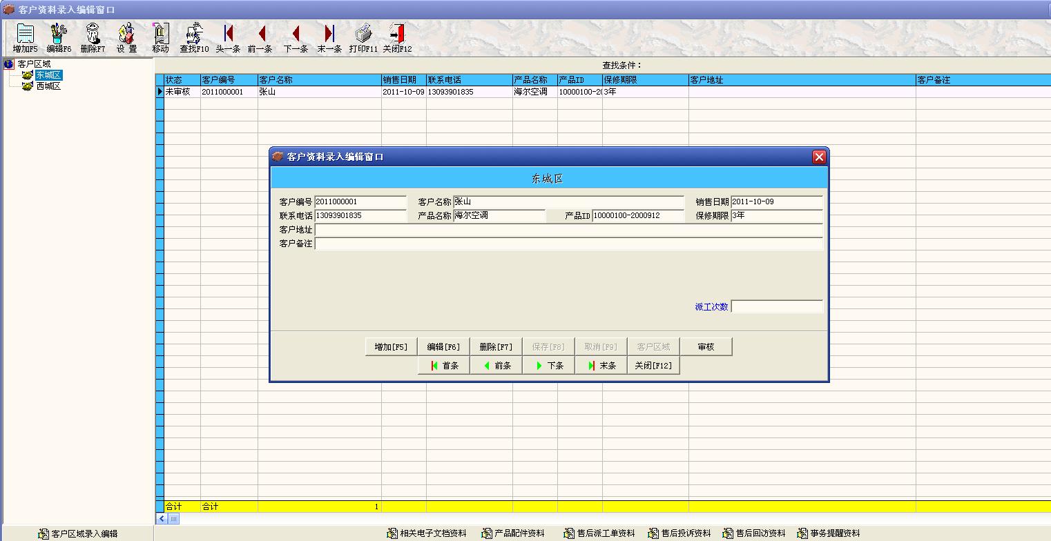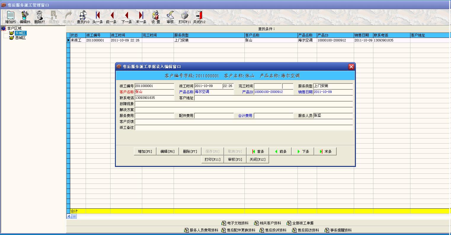 好用售后服务管理系统为您的售后服务提供一个科学、高效的管理工具,好用售后服务管理系统包含:售后服务人员管理、客户服务需求受理管理、客户服务派工单、配件耗用数据统计报表、客户来电记录管理。如果在电脑上安装一个具有来电显示功能的调制解调器或语音卡,可自动记录客户来电,并根据客户来电的电话号码,显示该客户的客户服务需求受理单或客户的客户服务派工单,可以直接拨打、接听、挂断电话。网络版软件不包括后台数据库MS SQL SERVER,需用户自备,可以到我们网站下载数据库MS SQL SERVER。