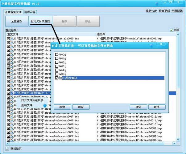 “自定义目录查找”可以选择查找区域,直接添加目录或者直接拖放文件夹进去就行了。
