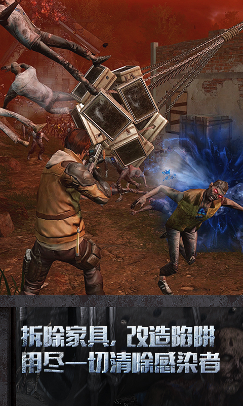 这类僵尸行动速度较慢,换上弓箭,按住右下角瞄准键,让中心的十字对准僵尸的头,再松手即可命中僵尸。可以边射边退后,拉开距离。