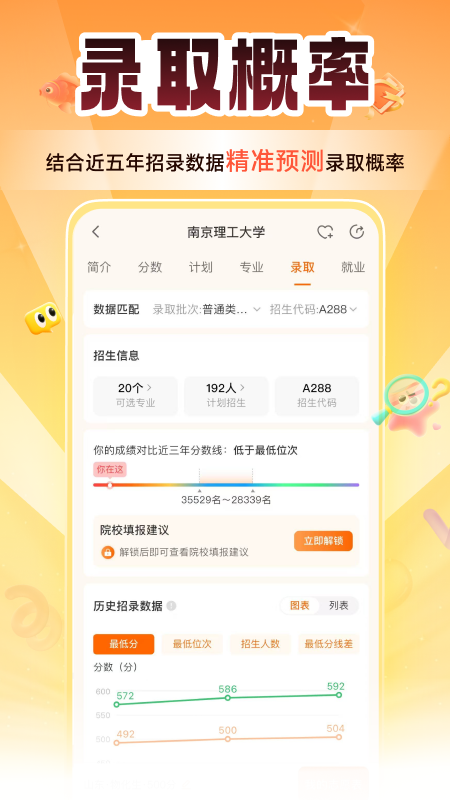 掌上高考app聚合2600余所高校权威认证的录取分数、招生计划、就业分析等数据,为广大考生提供全面、准确的志愿填报参考!