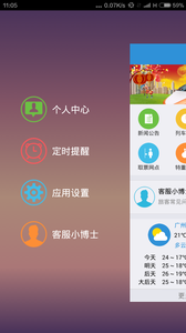 提醒功能栏:提供“定时提醒”服务,可设置出行时间提醒,有闹钟提醒和短信提醒2种方式供选择,让旅客免去记错时间赶不上车的烦恼。