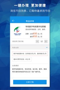 及时掌握业务及套餐、一键式订购、自主选择业务订购时长,帮您精打细算,随心所欲观看节目;