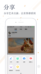 ◇艺术圈子:分享、评画、听展、找东家、藏友汇、约泡功夫茶、艺师汇墨趣;