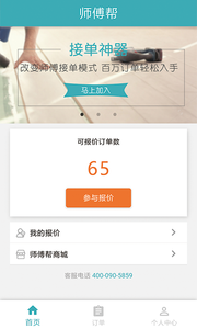师傅帮pc版是一款简单实用的一站式家居送装服务软件,师傅帮电脑版通过接收订单,查看订单,并根据订单内容提供服务,并更改订单状态,师傅帮还可以免费为买家、卖家、送装师傅提供家具配送、安装、维护、保养等一站式服务,通过规范的服务标准,建立一个规范的家居送装平台。