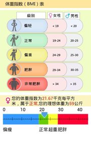 这是一款通过用户滑动选择身高和体重来测试自己的BMI值的一款软件,测试结果还可以分享到新浪微博哦,快来跟好友PK一下BMI吧。