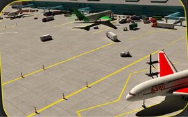 三维机场为主题的环境,包括波音喷气式飞机和一架C-130运输机两架飞机