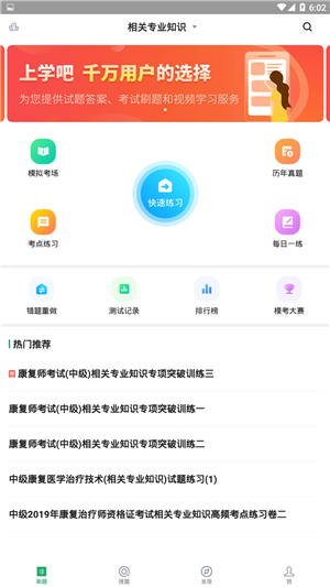 康复医学治疗技术题库有模拟考场、历年真题练习、每日一练、快速练习、考点练习、考试押题、做题记录等