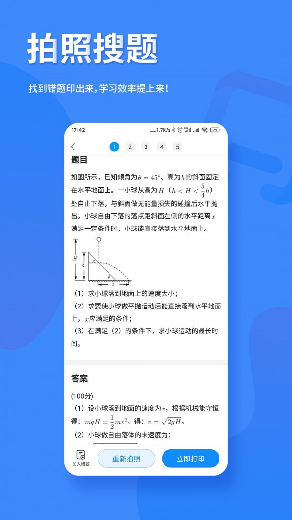 1、拍照打印错题,或搜题找到题目,并支持加入错题本进行收纳整理。