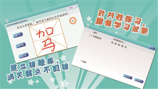 2、系统针对生字推出了各种类型的试题进行练习,可以扩展孩子的知识面积。