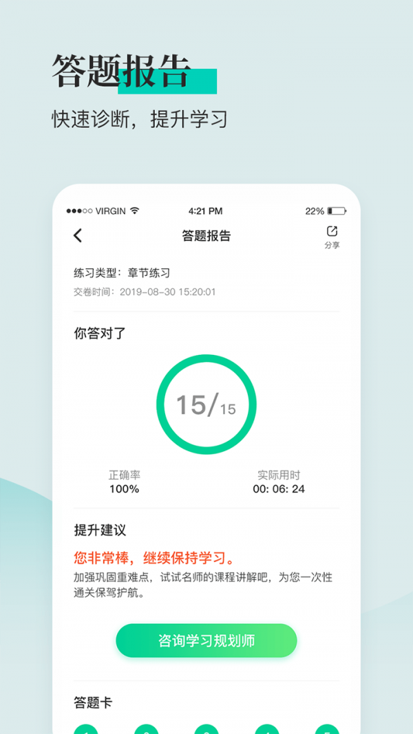 安全工程师题库通可以根据十几万用户的答题情况,分析出高频考点和高频易错点,也能为你提供精准的能力评估报告,精准分析考点掌握情况。