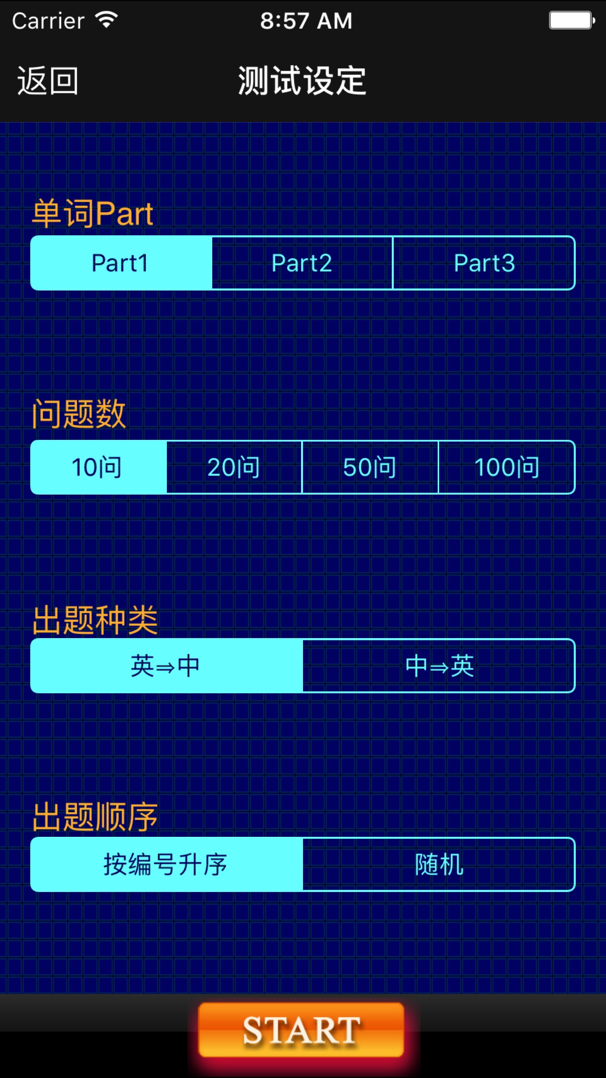 可以选择测试范围,设定测试条件,对您已经学习过的单词进行测试;