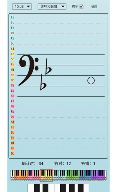 五线谱学习APP可以选择所有不同的调进行练习(1至7个升号#或降号b)。可以选择一个或者多个音域进行练习。可以练习双音、三和弦等等。