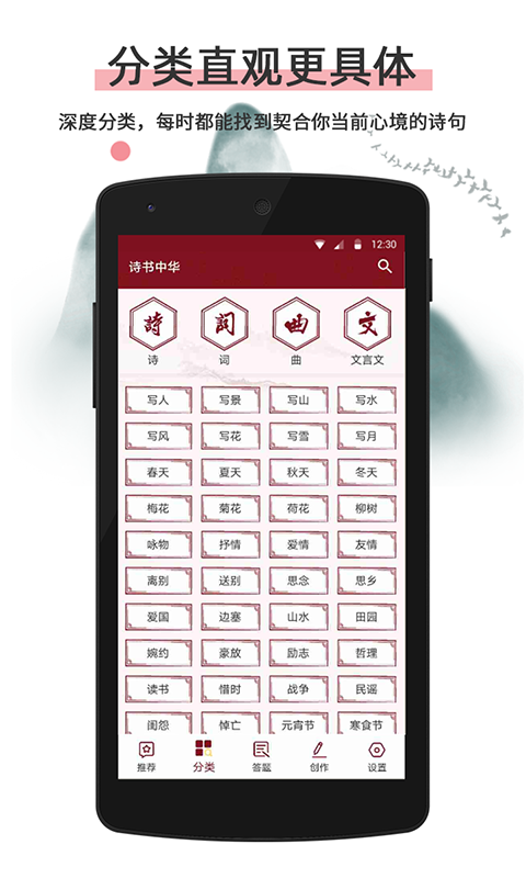 2、选择诗词的类型,为用户提供精准的诗词资源和内容。