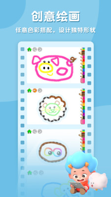 Bambini出品,适合4-6周岁儿童使用。以及十多种趣味动画和声音,在趣味画图中培养色彩感知,开发艺术潜能,提升想象力和创造力。