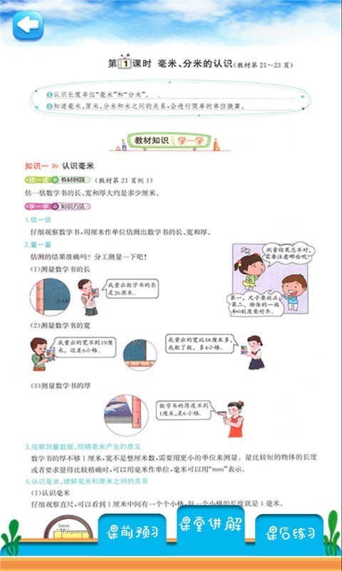 三年级下册数学解读(人教版),收录了人教版小学三年级数学下册的全部单元。通过阅读的方式学习每一单元,并配有每一单元的解析,以及每一单元的习题练习。通过课前预习,课堂学习,课后练习三个步骤的方式学习课文。
