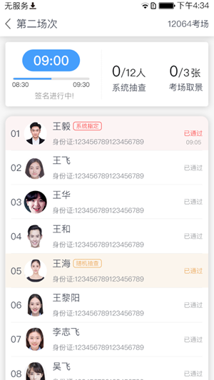 学生进入考场时候,监考人员打开APP扫描考生的脸部,确认该考生为本人后,方可进入考场。