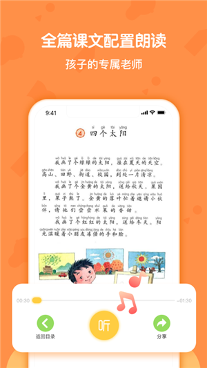 2、为用户提供电子课本上面的每一篇课文都会有专业的配音人员为其进行配音,孩子在家进行学习的时候,可以跟着专业的课文录音进行跟读学习。