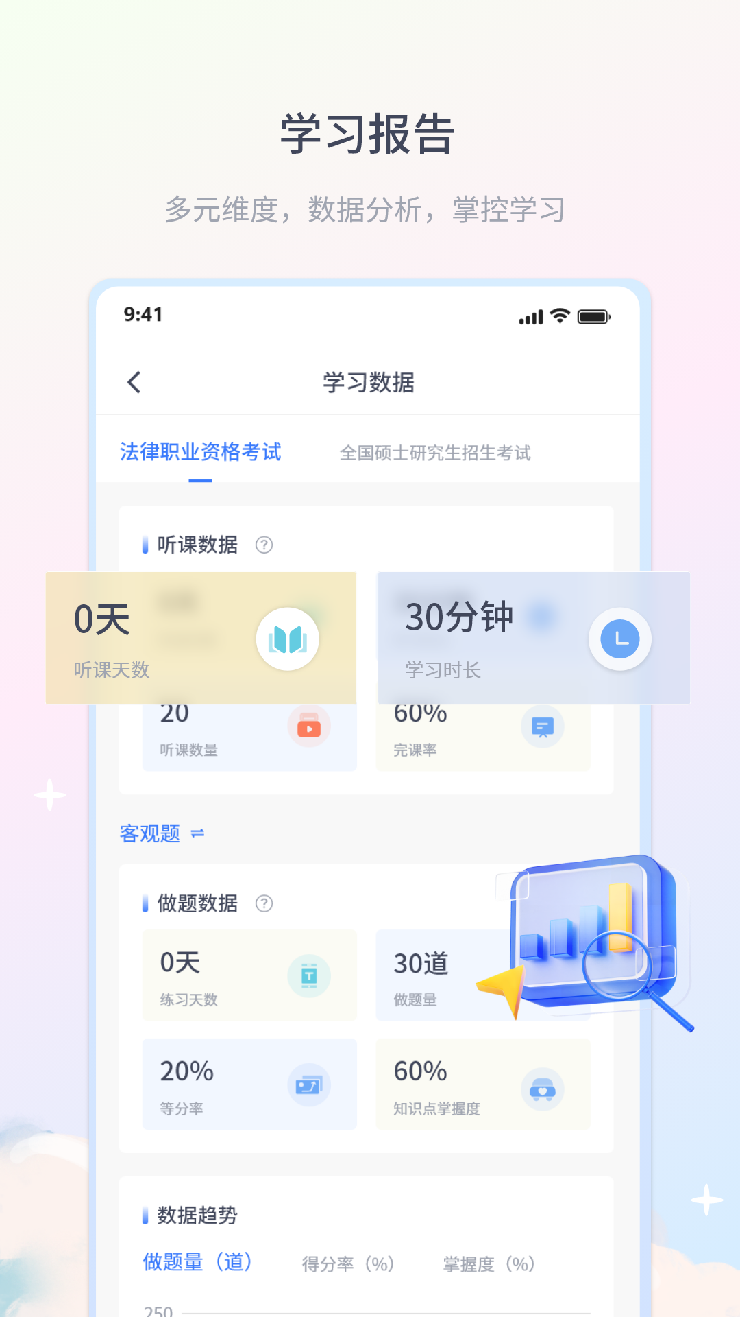 律学法考app电脑版专为法律职业资格考试打造,整合听课、学习、备考功能,提供免费试听课程,实现个性化学习方案。拥有法考专用教材,课程全面且性价比高,提供一对一服务及在线答疑。用户可随时进行章节练习和历年真题训练,助力高效法律学习。