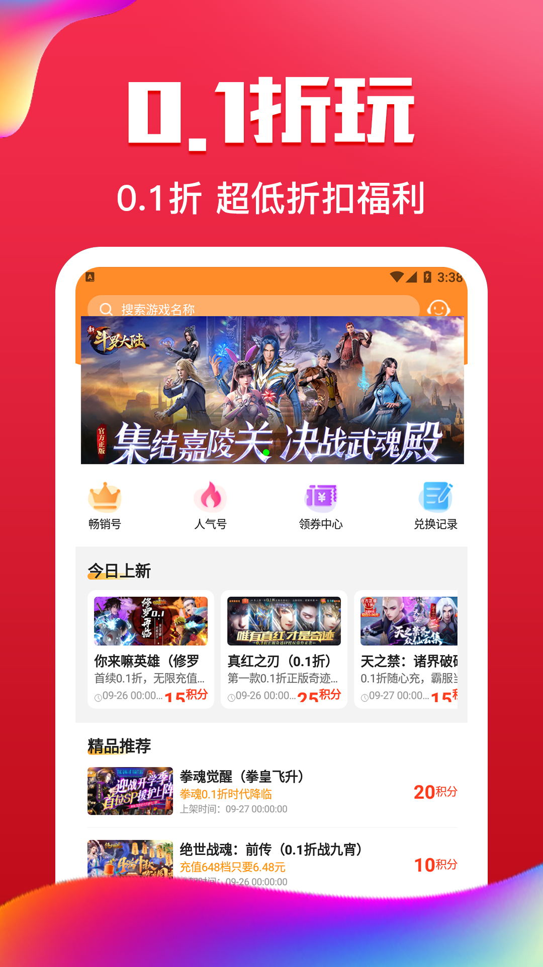 0.1折游戏是一款福利超齐全的游戏盒子,涵盖传奇手游、卡牌回合制手游、三国志手游、模拟养成游戏、色扮演手游,放置挂机手游等千款游戏选择