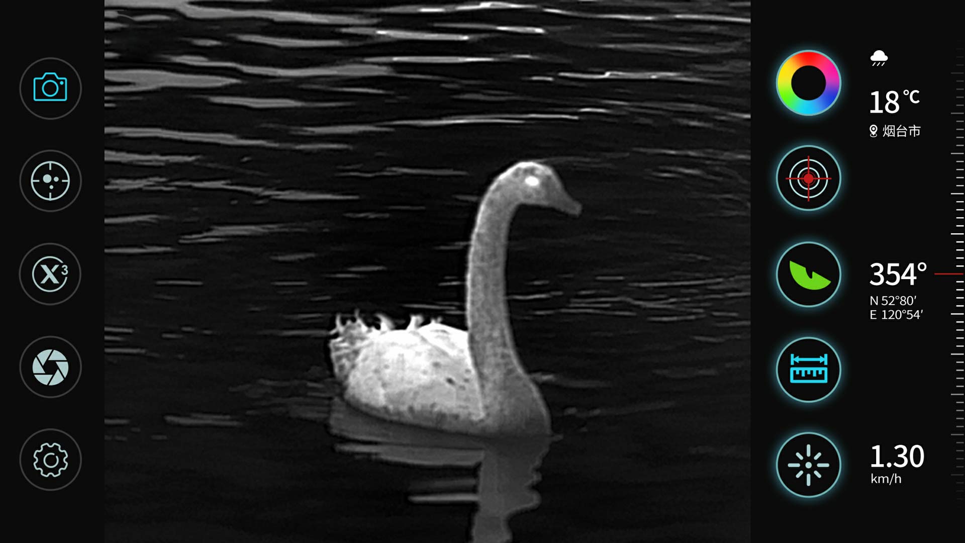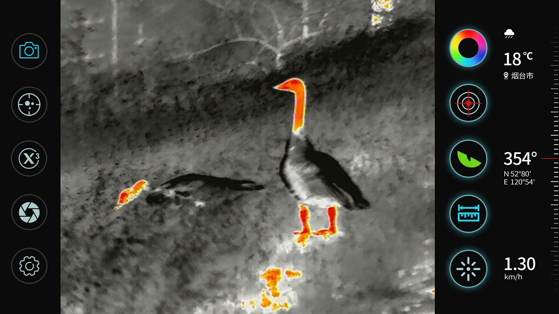 世界最小的户外热成像夜视仪——天眼X2,采用世界先进的艾睿12微米高热敏度热成像核芯,同时搭载了艾睿自主研发的ASIC图像处理器芯片,将InfiRay强大的探测器性能发挥得淋漓尽致。配合长焦可调镜头,把普通手机变成专业热成像夜视仪。实现超远夜视功能,图像更清晰锐利。