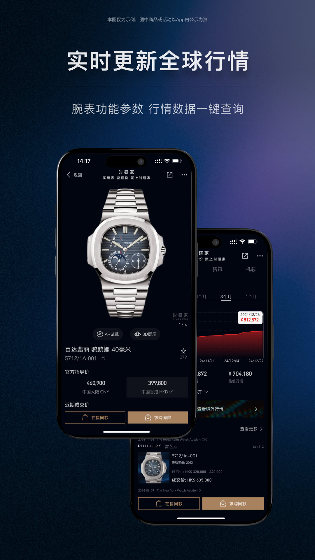 「实时行情尽在掌握」 收录上亿次报价数据, 关注心仪表款,实时行情走势, 成为随身携带的腕表晴雨表。
