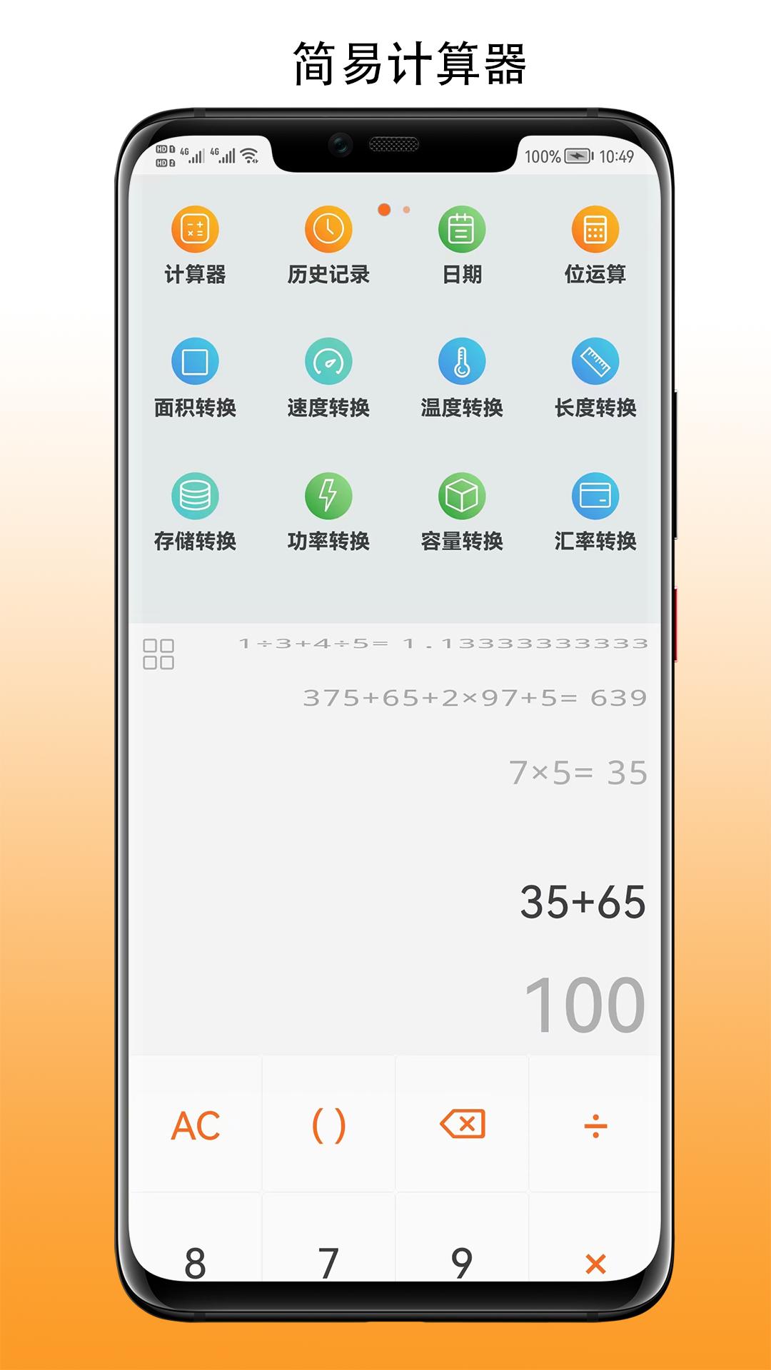 7.支持储存,容积,长度,面积,汇率重量等转换