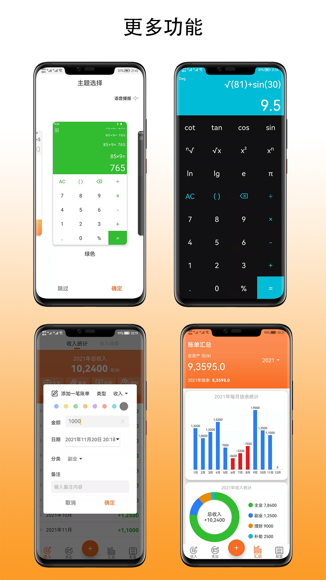 四,新增复杂科学计算 sin,cos,tan,log,ln等支持角度和弧度制
