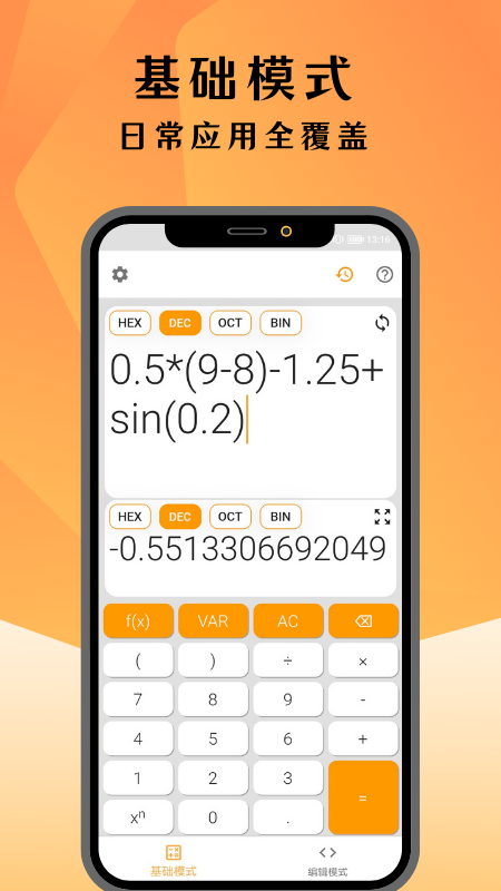 编程计算器提供基础模式和编辑模式两种操作方式,内置基础运算函数,语法解析器,支持多种应用场景。