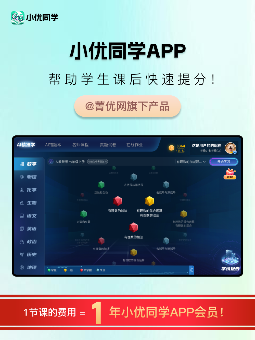 小优同学APP是一款以学生错题数据驱动,集错题整理、学情诊断、个性解决、巩固复习和进阶拓展等,动态推荐学习路径的智适应学习类APP。搭配专属的错题打印机,通过蓝牙连接,即可无墨打印错题及相关学习内容;绑定专属的智能伴学笔,可以同步伴学笔采集的错题难题数据到APP,也可以控制伴学笔上是否可以直接显示题目的答案和解答过程。 小优同学APP拥有菁优网优质的教育资源,聚焦10-18岁孩子家庭学习场景,是学生自主学习的好伙伴,家长检查作业及辅导学习的好帮手。