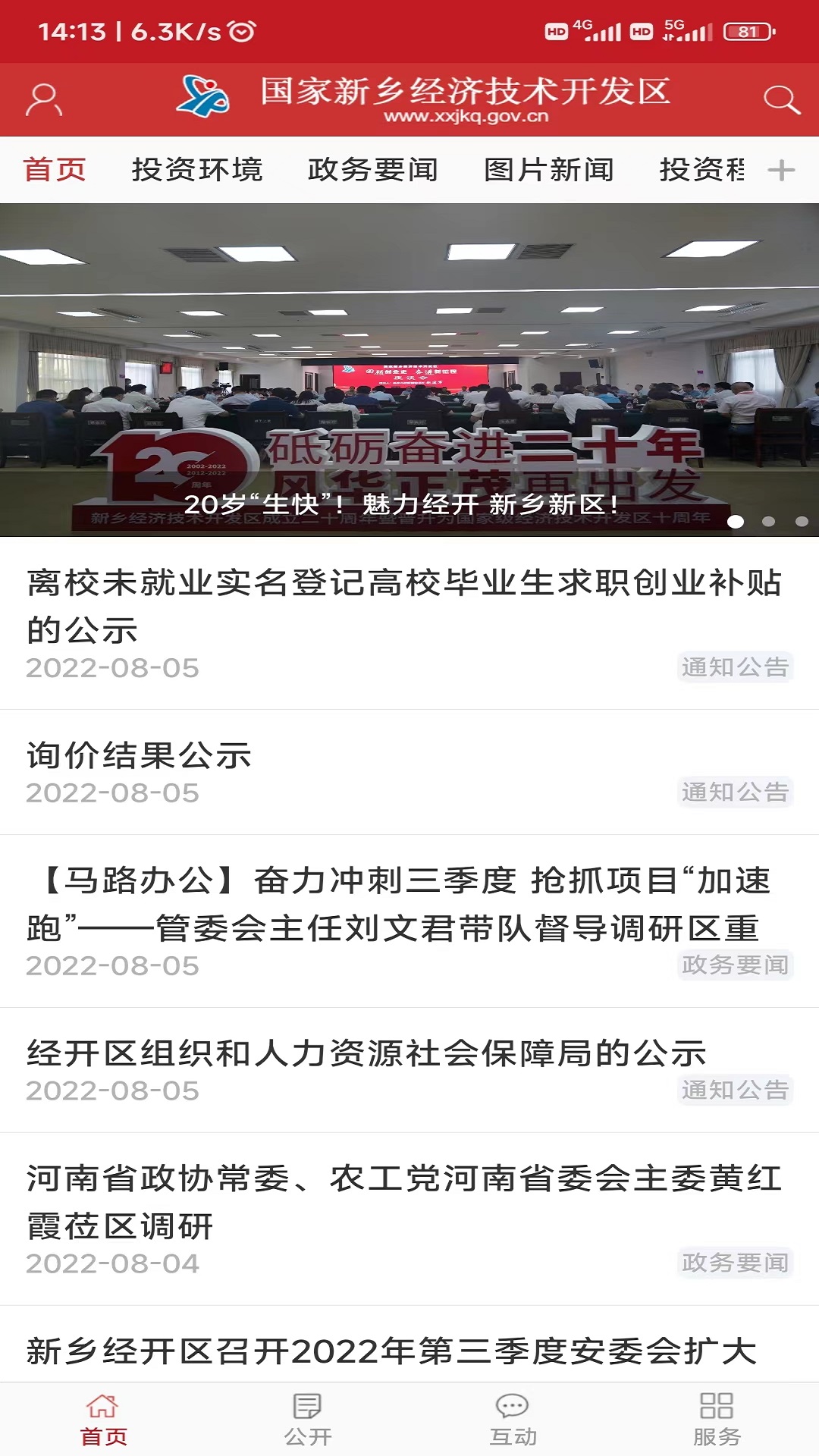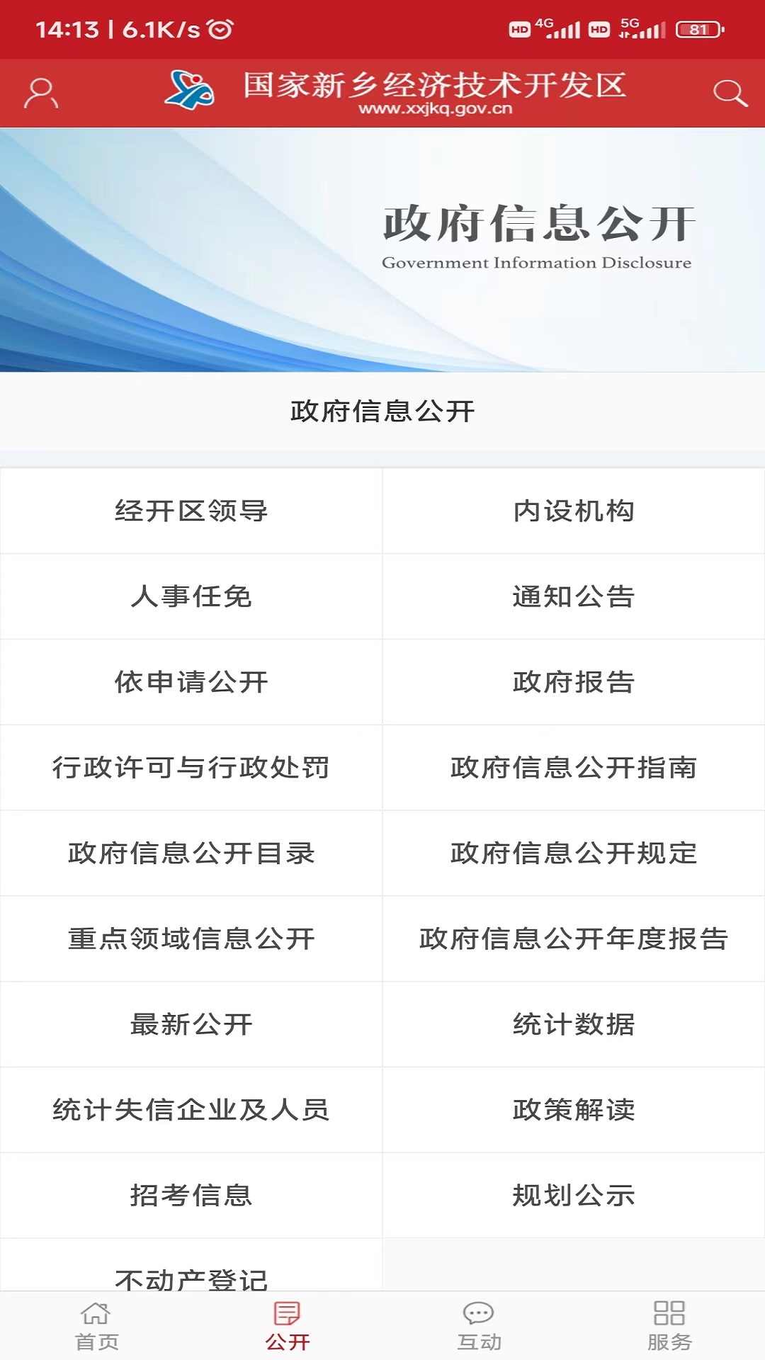 新乡经开区APP电脑版是国家新乡经开区管委会官方移动客户端,集信息发布、政务公开与在线服务于一体。包含要闻、公开、互动、服务等四大板块,设有领导信箱、网上咨询等子栏目,旨在为公众提供最新的政策文件、政务动态、活动信息,并可实现政府机构信息查询及业务办理。