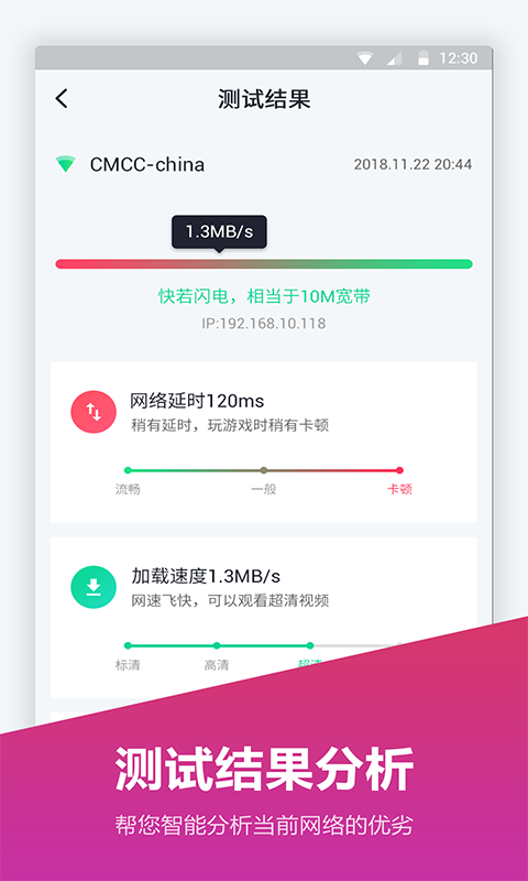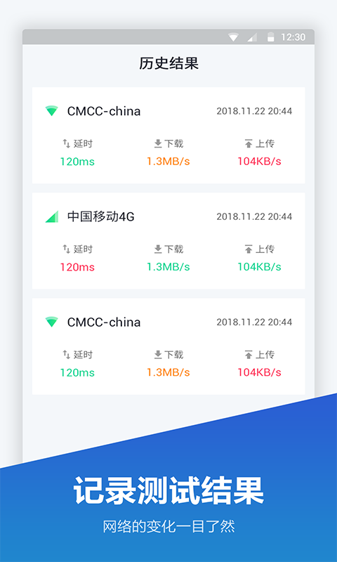 网络测速仪是一款简单易用且精准测试的测网速工具,一键解决3G,4G,WIFI网络测速。让您随时随地查看当前网络状态。