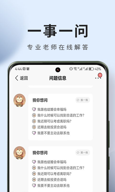 神算喵是一款以大数据、天文学、易学、数学模型为主要依据专业为年轻人打造的运势类兴趣App。在中国这片古老而神奇的土地上,数百万的年轻人可以通过神算喵,学习和分享天文预测的知识。