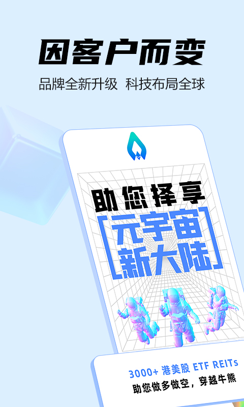 富元犇犇与香港元宇证券(持牌编号: AAW177)合作,为全球投资者提供实时行情、极速开户、无延迟交易、智能跟投、智能投顾等服务,助力客户投资。