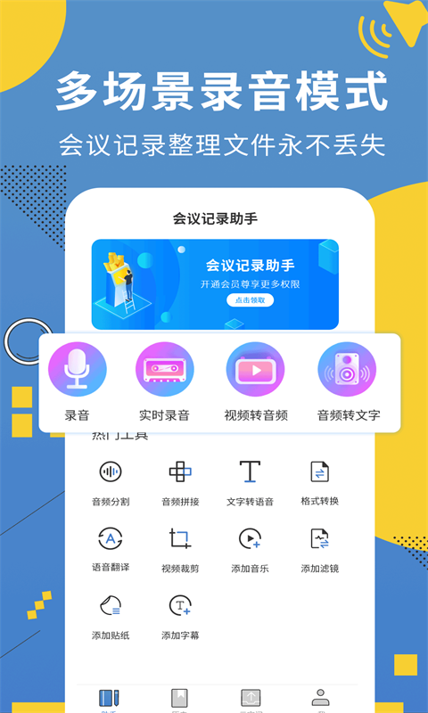 会议记录助手帮助您开会的时候记录,语音速记,语音记录需要记录,并转成文字。录音转文字做笔记可以提高效率。